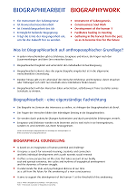 Weitere Informationen finden Sie in den folgende Broschüren zum Thema "Was ist Biografiearbeit?"