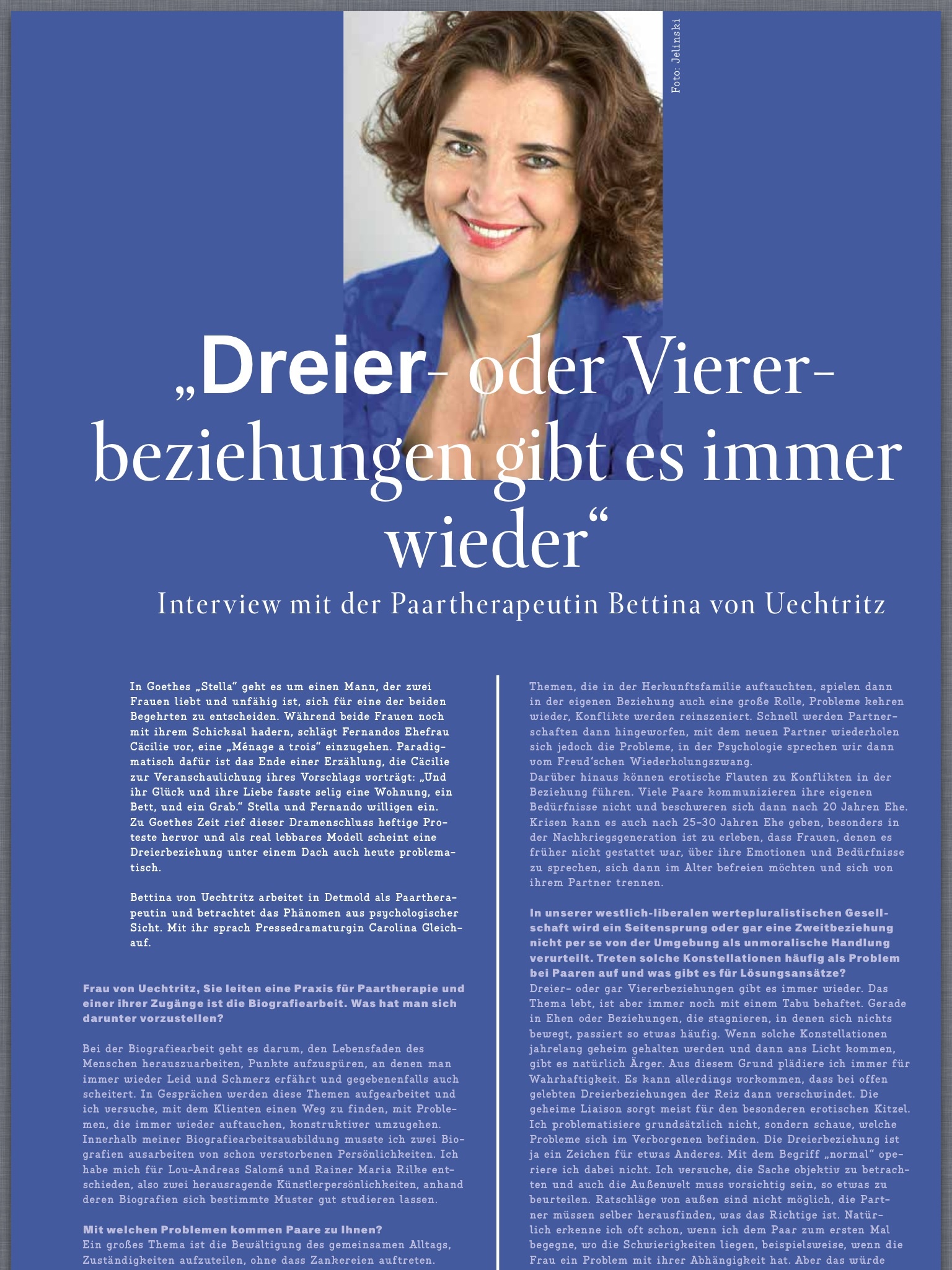 Interview über Dreiecksbeziehungen anlässlich des Schauspiels "Stella" am Landestheater Detmold